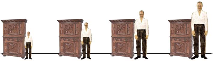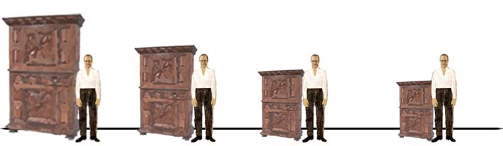 If you think of photography, things become clear in a flash. When isolating an object into a picture, it is difficult to tell afterwards how large the original object was.